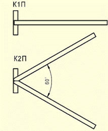 Кронштейны приставные для крепления на опорыК1П-«Н»-«В»; К2П-«Н»-«В» 1 – «К» – кронштейн;